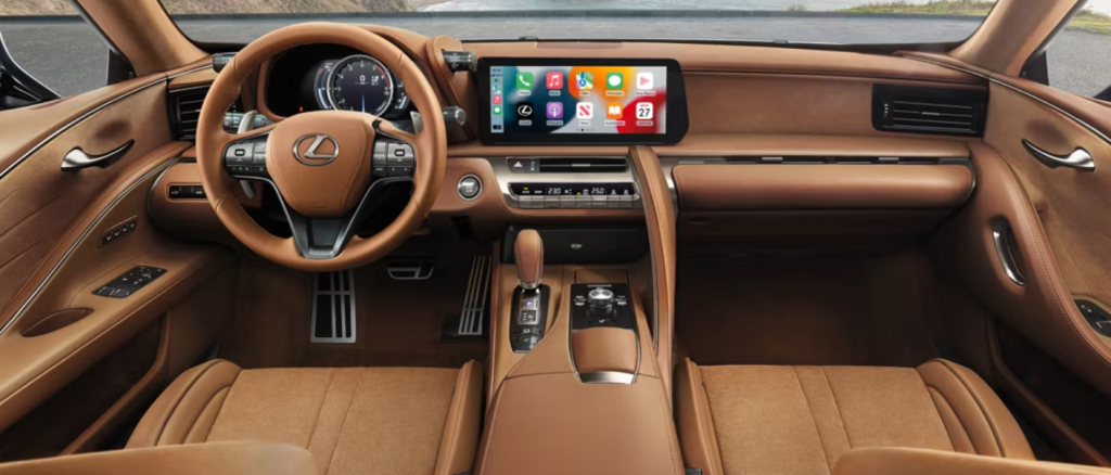 With a long 2,870 mm wheelbase, compact 920 mm front and 970 mm rear overhangs and a notably low hood, LC’s athletic profile is set off by a sweeping roofline, sensual curves, and wind-cutting silhouette. And set further apart by a series of inspired colours, including: Ultrasonic Blue Mica, Cloudburst Grey, and Iridium. LC’s interior cabin is designed for driving pleasure and luxurious comfort. The cockpit is an invitation to high-spirited driving.