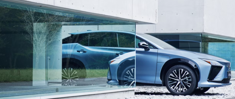 Next Generation Design Language. Lexus designers have crafted a luxury electric SUV that captures the sense of seamless acceleration and dynamic torque unique to Battery Electric Vehicles (BEVs). The Lexus spindle body architecture clearly expresses the Lexus RZ’s athletic proportions, aerodynamic efficiency, and unique personality. The sleek minimalist aesthetic continues inside giving the spacious interior a bright airy feel as luxurious as it looks. Lexus RZ’s exterior design adds dynamic handling to the agile ride. The rear flares visually evoke the powerful traction produced by the rear motor. A precisely honed character line creates an arrow-like profile with a flowing roofline to minimize drag, reduce noise and lend stability at high speeds.