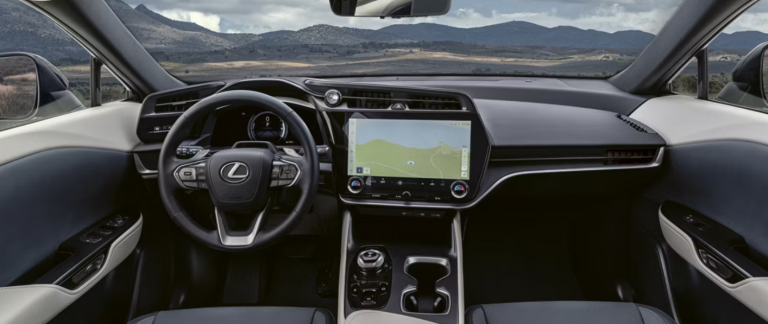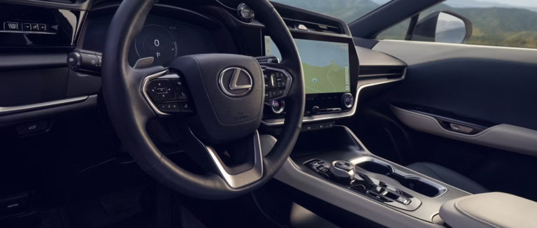 The RZ connects you like never before. Your hub for the highly intuitive Lexus Interface multimedia system is the 14” touchscreen. Manual or voice commands access its suite of connected features, and personalized profiles ensure everyone’s favourite settings and comfort level are remembered. Lexus Interface puts a suite of connected features at your fingertips. All models receive Service Connect (5-year minimum, 4G network dependent)36,37,46, Safety Connect (5-year minimum, 4G network dependent)36,37,46 and Remote Connect35 (3-year trial) that allows you to control certain vehicle features from a distance. Drive Connect (available 3-year trial), provides cloud navigation. embedded on the vehicle. Powered by Google Points-of-Interest data, Cloud Navigation1 supports real-time traffic and map updates and integrates with Intelligent Assistant voice commands. Say “Hey Lexus” to control a range of features with Intelligent Assistant. Dictate a message, check the weather, or find your next destination. Included with Drive Connect. Provides live assistance for finding destinations. Ask for a specific business, address, or point and the live agent will remotely send the best route to your navigation system. Save your radio favourites, language, map settings, Lexus app40 settings or even seat position and temperature preference with personalized user profiles. Stored in the cloud, they can go from vehicle to vehicle.